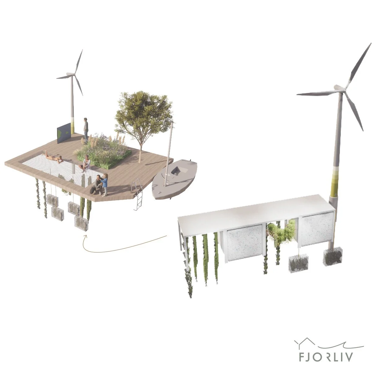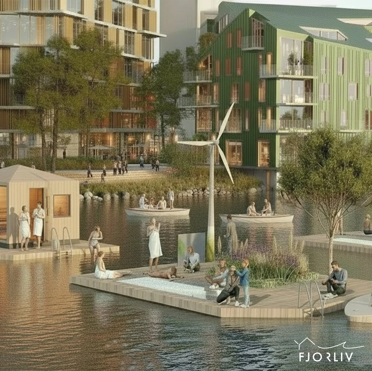 Naturberigende design med grøn energi og rehabilitering på Fjorde og have